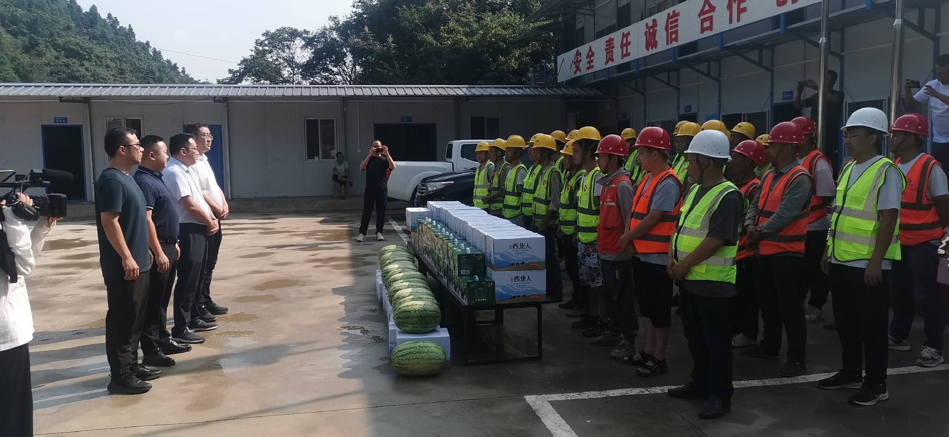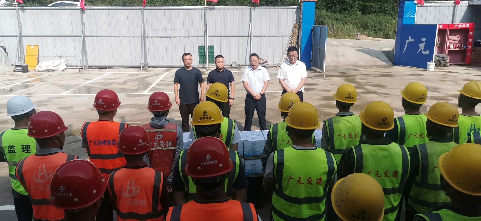 8月21日上午,利州區政府黨組成員、副區長馬太率隊前往月壩項目進行安全質量綜合檢查,并對項目一線勞動者進行防暑慰問。
