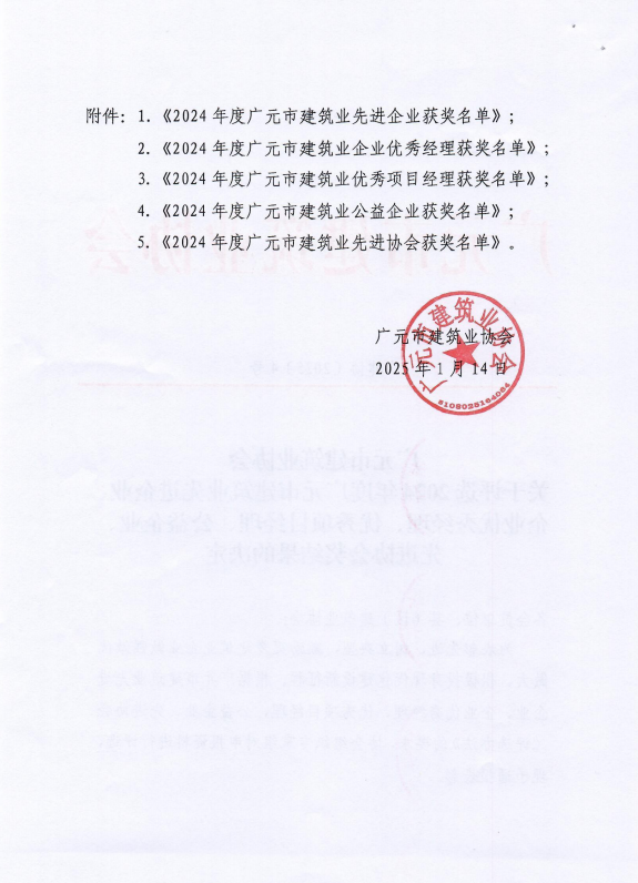 2025年1月15日,路橋集團受邀參加廣元市建筑業協會2024年年會暨2025年工作會。