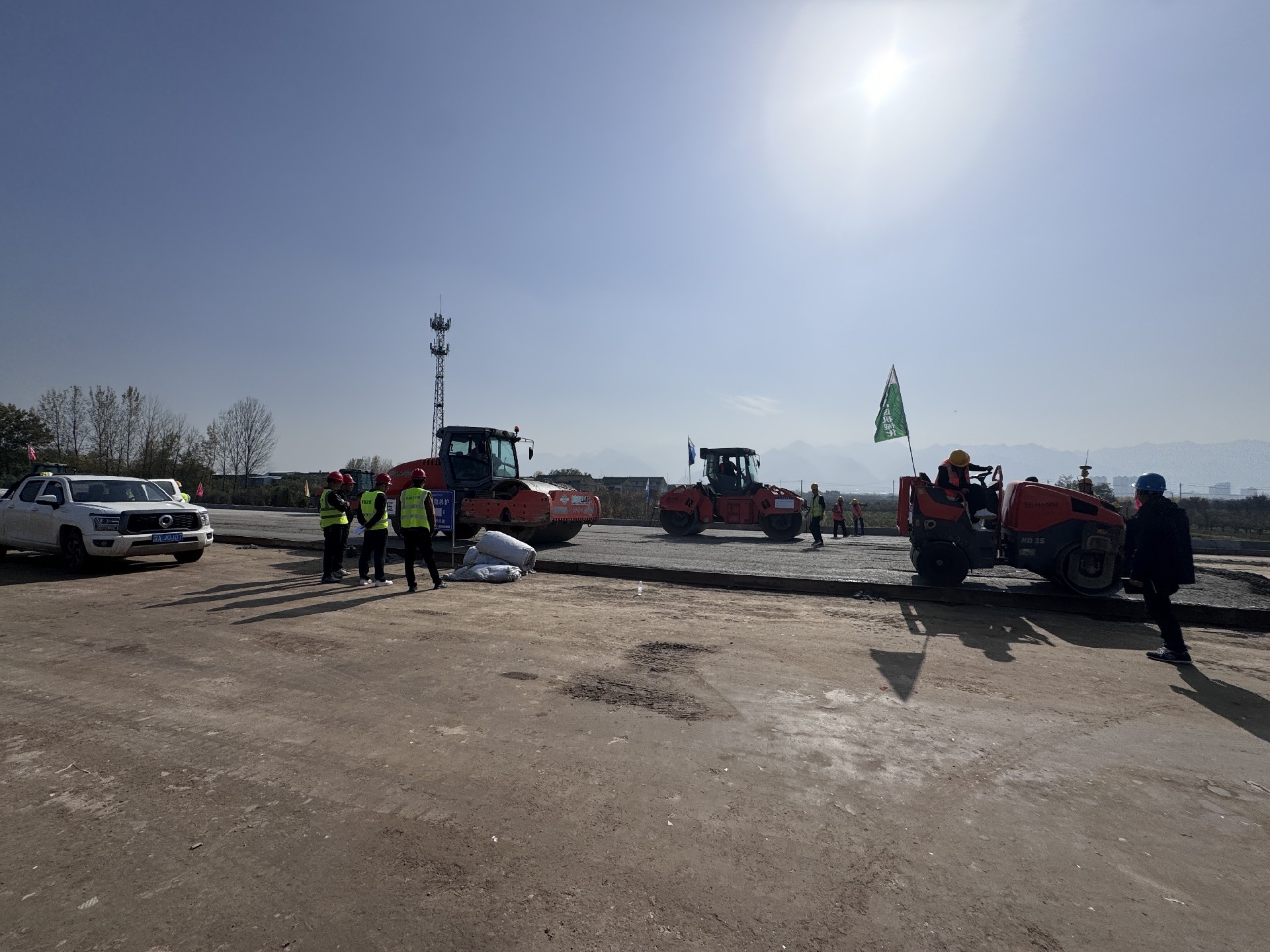 該系統創新性地融合GNSS RTK平面定位與LaserZone域激光高程控制技術,兼具精準性與實用性。盛康普技術團隊通過架設域激光發射器,在項目現場形成“激光墻”,實現高程毫米級精度控制。同時,經mmGPS流動站檢測設備實地檢測,已攤鋪面與設計數據偏差穩定在毫米級,平整度符合高等級路面規范。